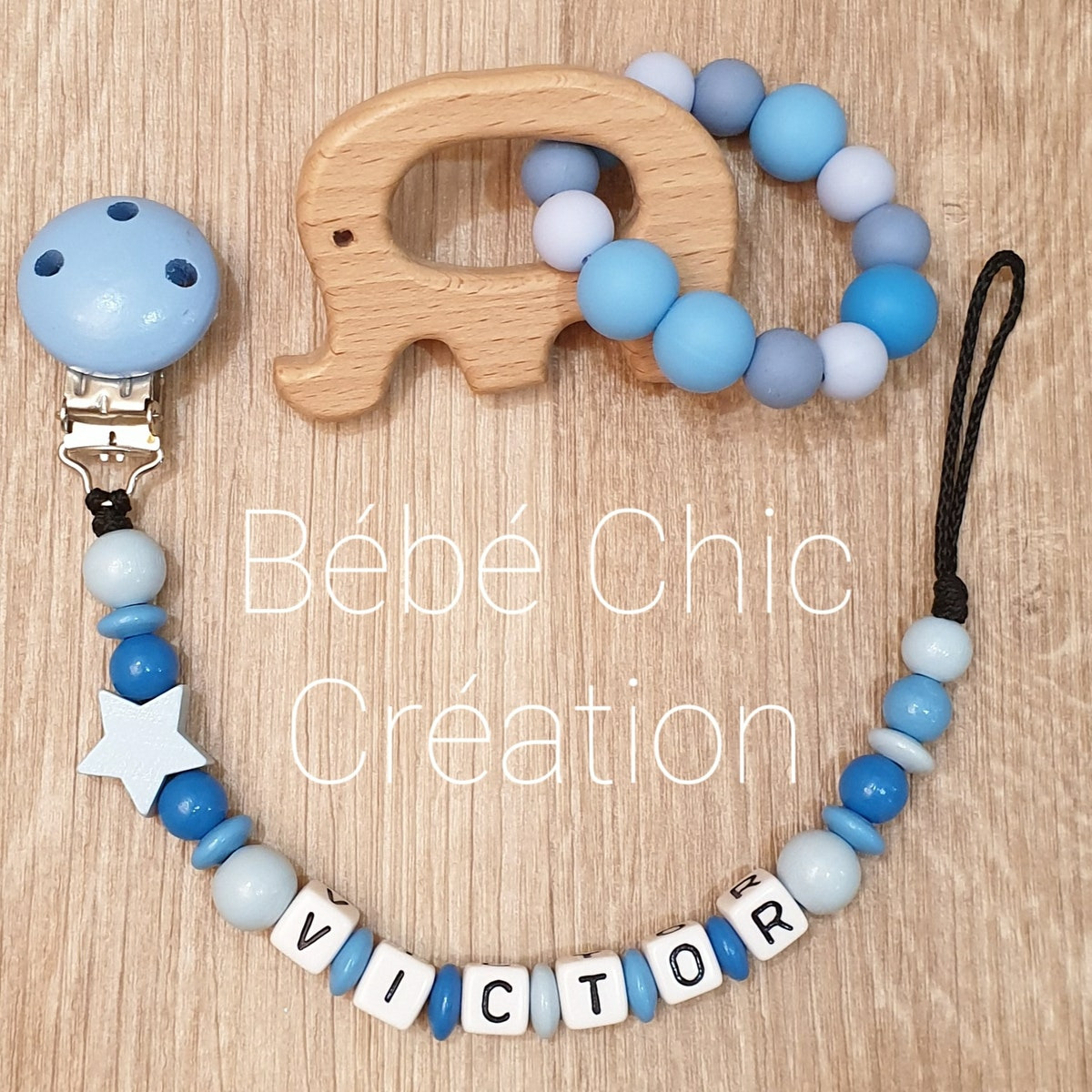 Attache sucette prénom personnalise Camaïeu de Bleus