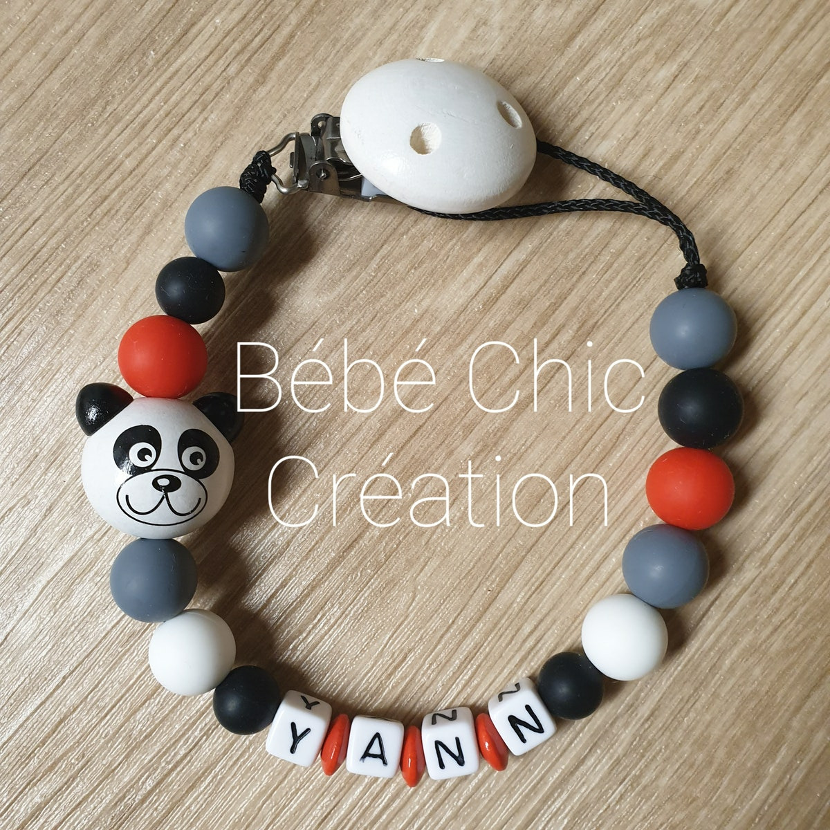 Attache sucette prénom personnalise en Silicone, panda