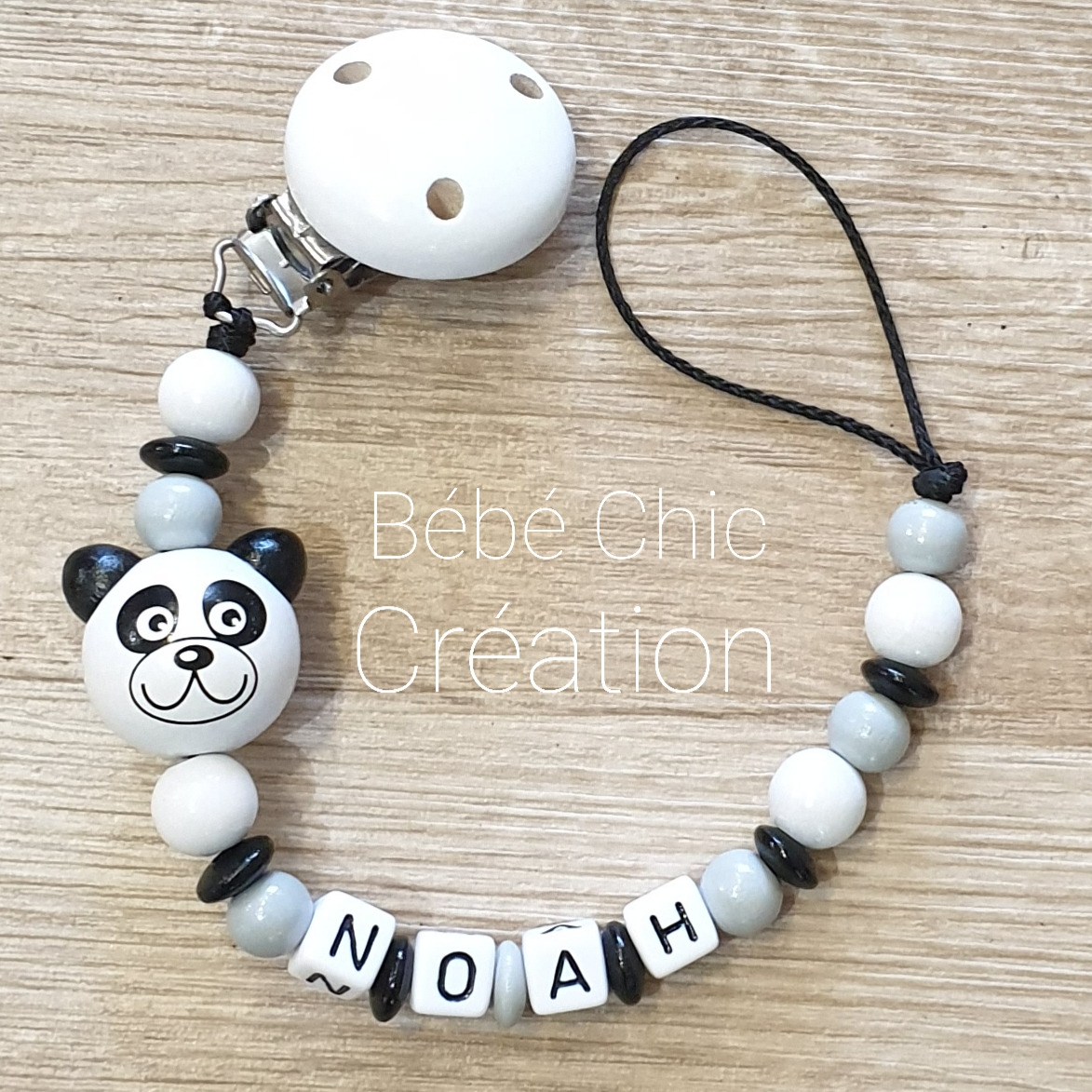Attache sucette prénom personnalise Panda