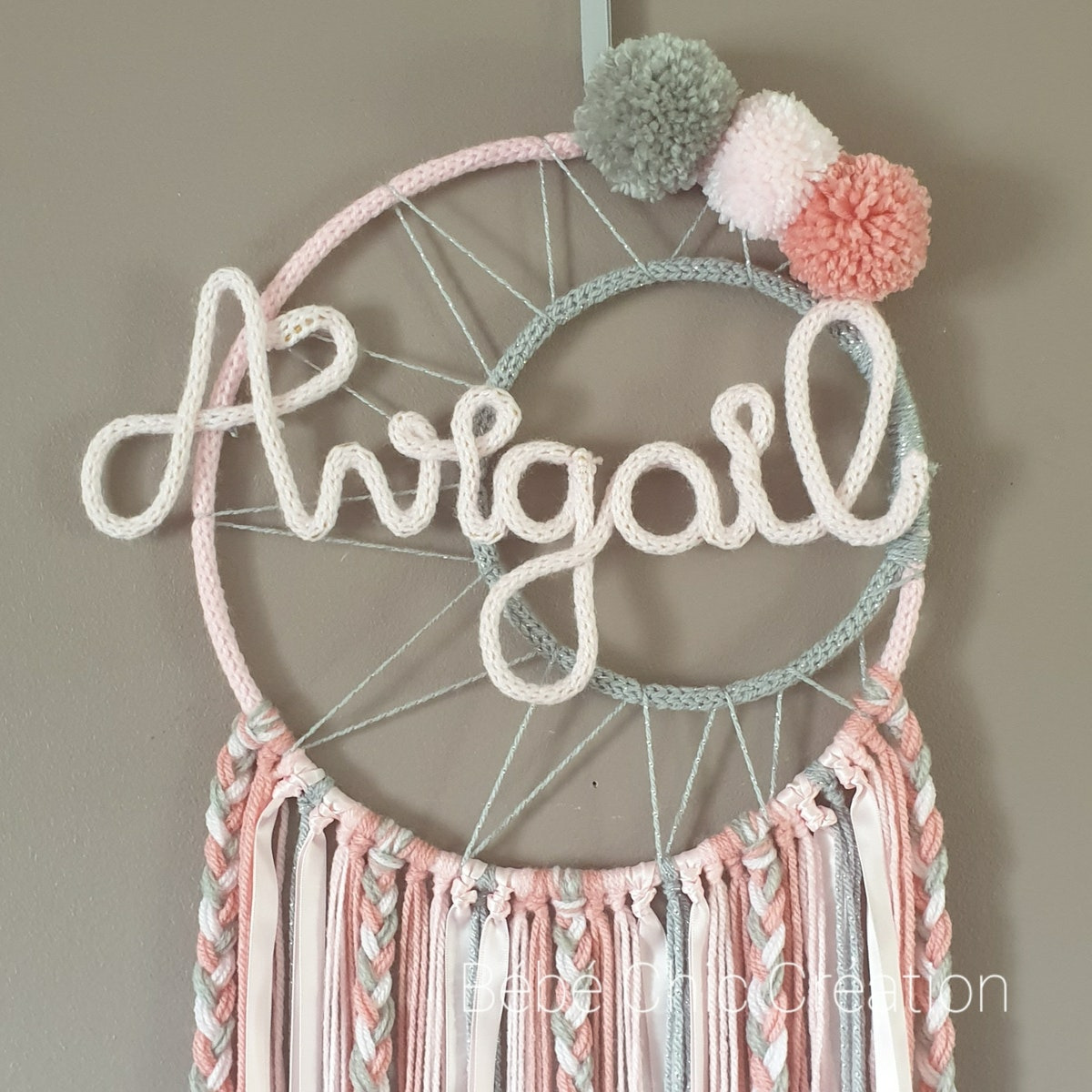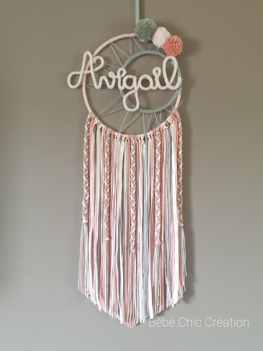 Attrape rêves Blanc, Rose pale, gris clair et vieux rose
