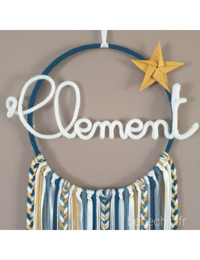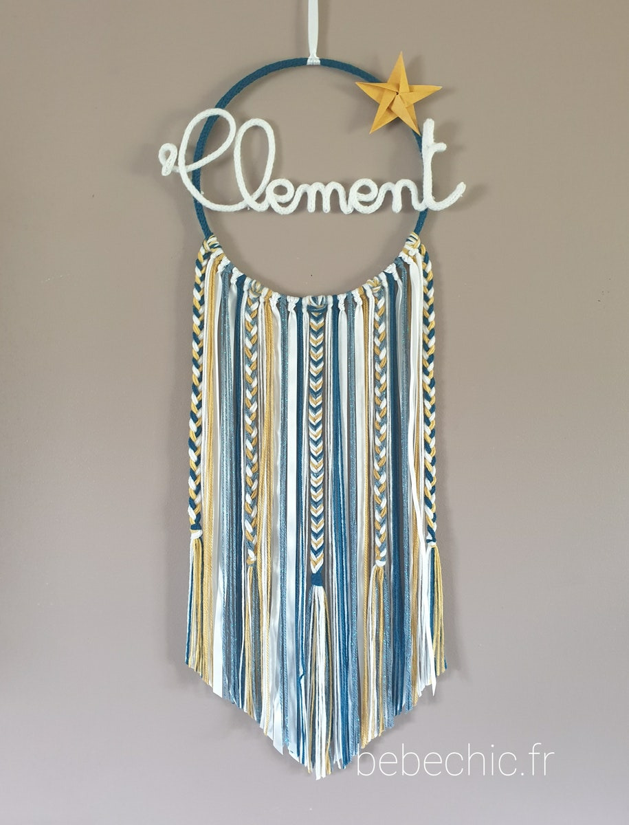 Attrape rêves personnalisable prenom, bleu, jaune, blanc