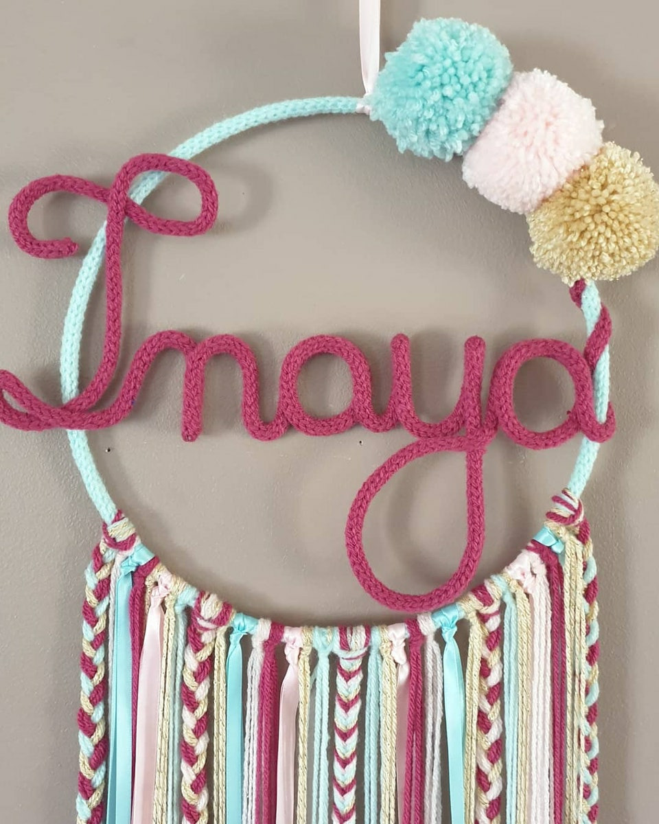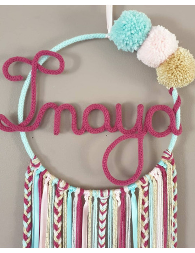 Attrape rêves personnalisable prenom, prune, vert d'eau, rose et or