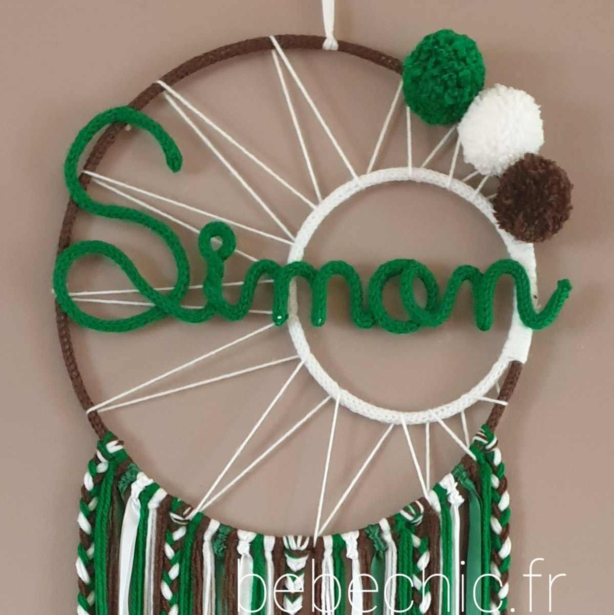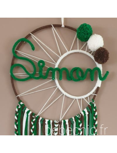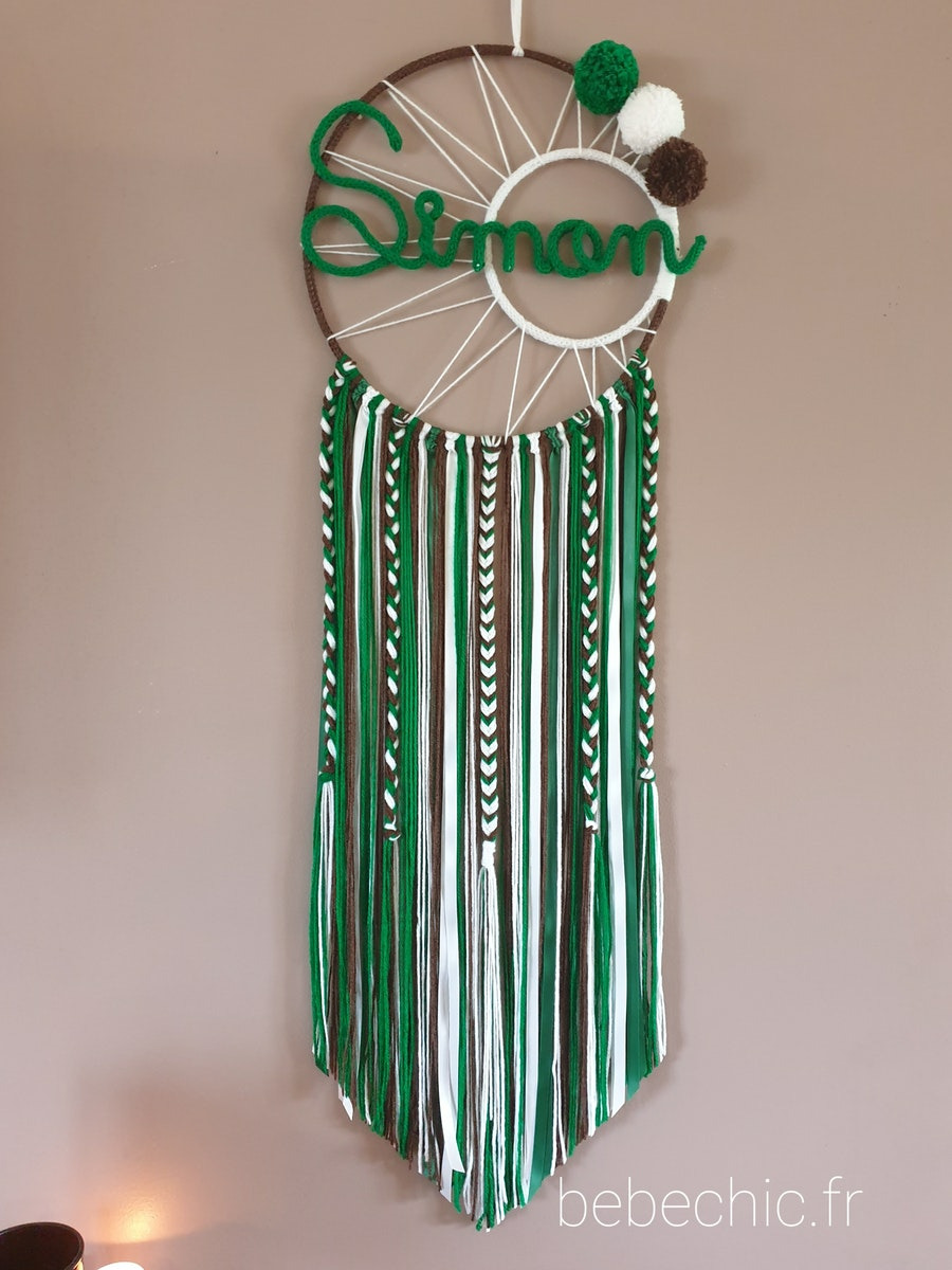 Attrape rêves personnalisé prénom, vert, blanc et marron