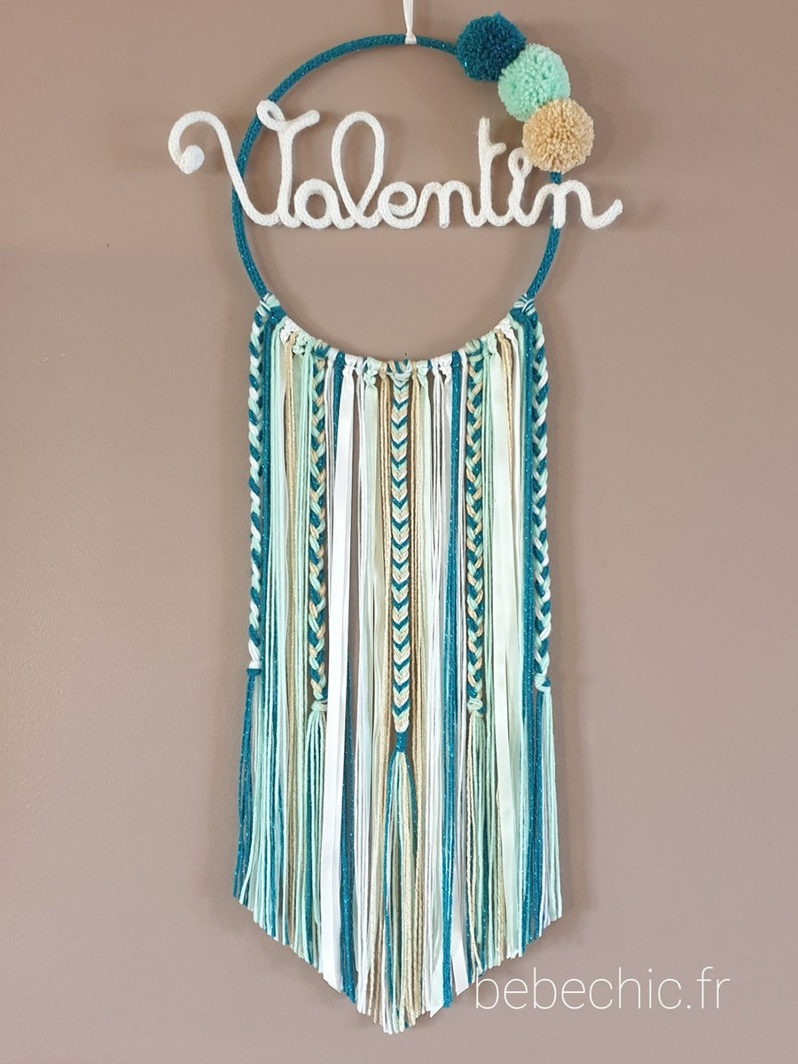 Attrape Rêves Prénom Personnalisable, Bleu Canard, Vert D'eau Et Lin
