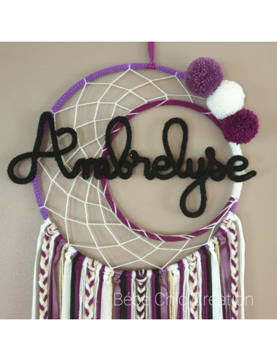 Attrape rêves prénom personnalisable, Camaïeu de violet, blanc et or