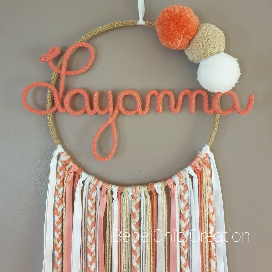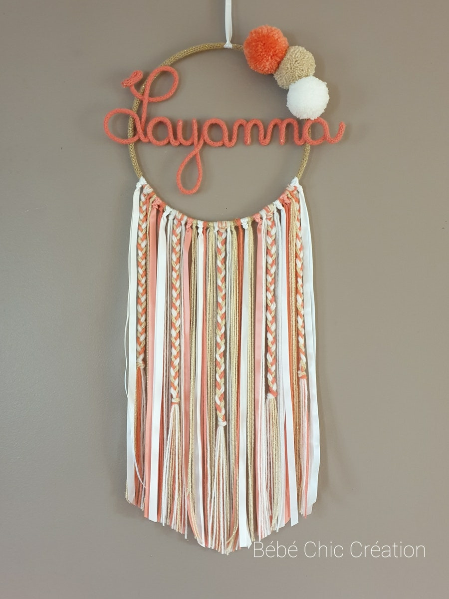 Attrape rêves prénom personnalisable Corail Or et Blanc