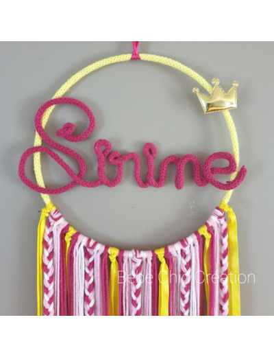 Attrape rêves prénom personnalisable Jaune fuchsia et rose