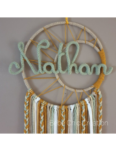 Attrape rêves prénom personnalisable, Moutarde, Vert de gris et Ficelle