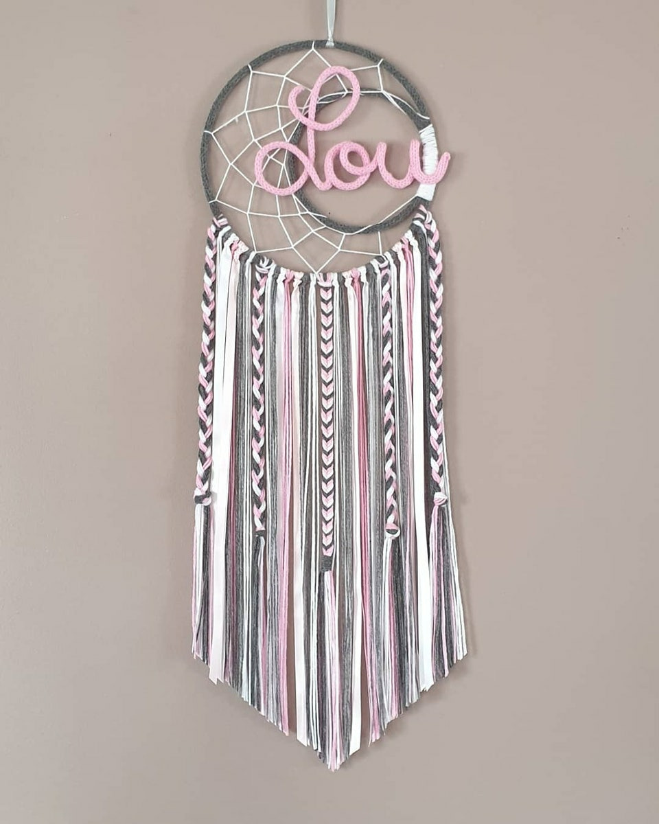Attrape rêves prénom personnalisable, rose, blanc anthracite