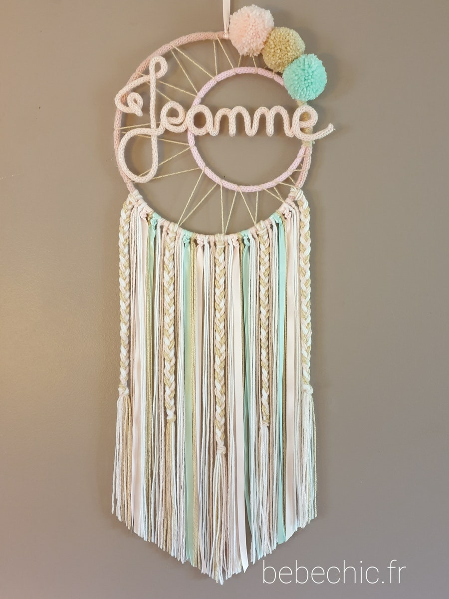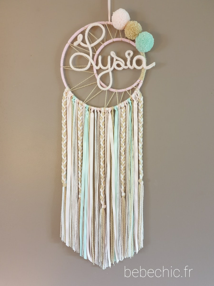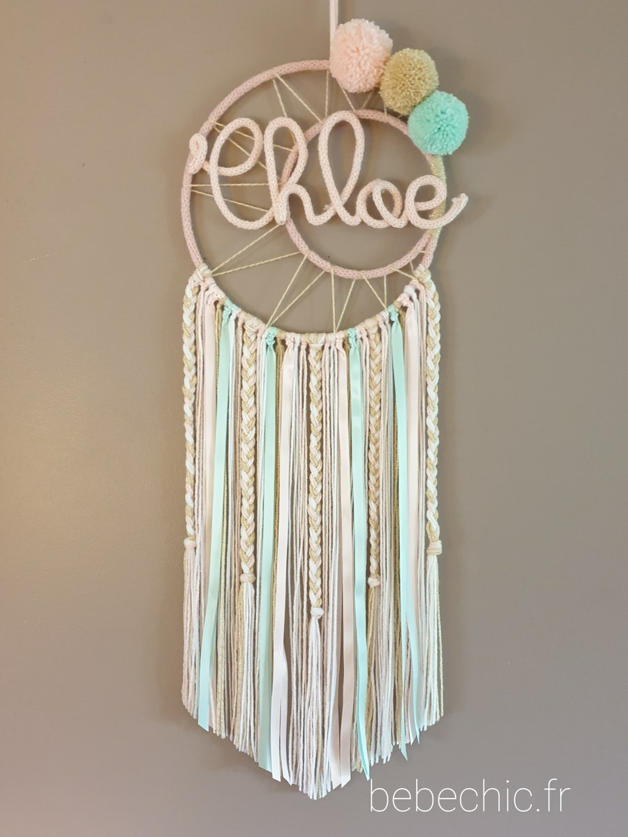 Attrape rêves prénom personnalisable, rose, or et vert d'eau