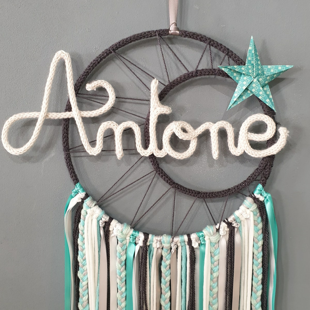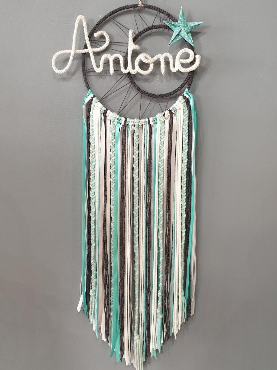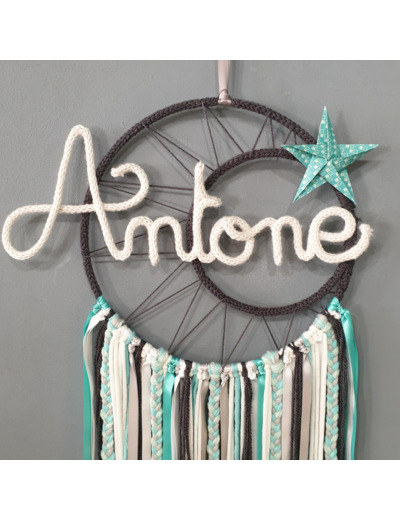 Attrape rêves prénom personnalisable, Vert Jade,anthracite et blanc