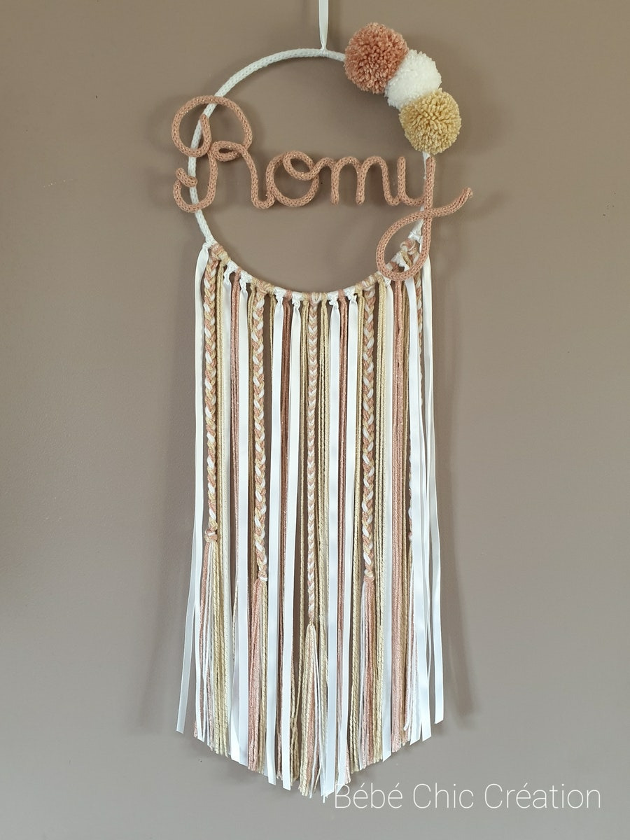 Attrape rêves prénom personnalisable Vieux rose pailleté