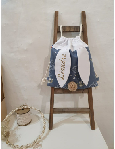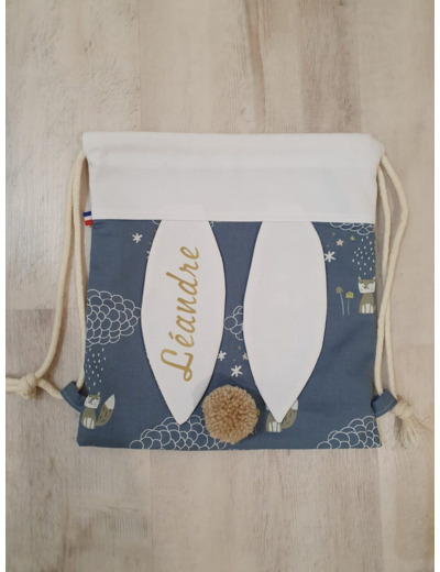 Voila un sac à dos tout mimi avec ses oreilles de lapin bi matière et son petit pompon assorti, il est idéal pour la créche, l'école, la nounou et même pour aller chez papi mamie . Ce petit sac lapinou sera le gardien idéal de doudou et tout plein de secrets ;)