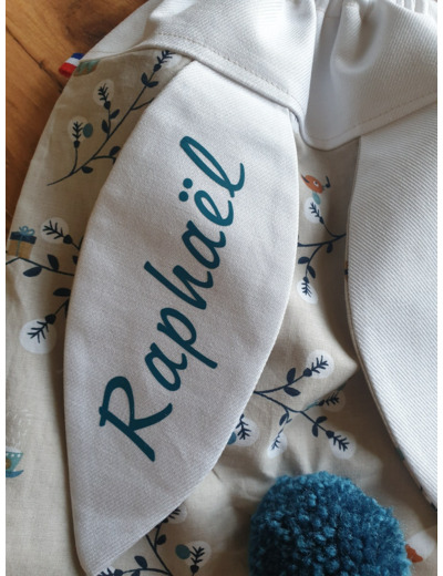 Si vous choisissez de le faire personnaliser le prénom sera écrit sur l'une des oreilles.