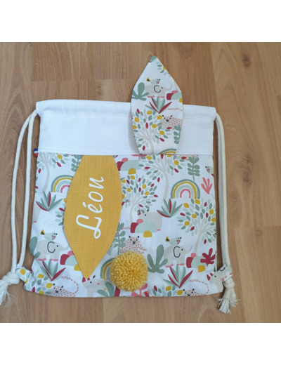 Sac à dos Pochon pour enfant, modèle blanc et jaune, petits arc en ciel éléphant