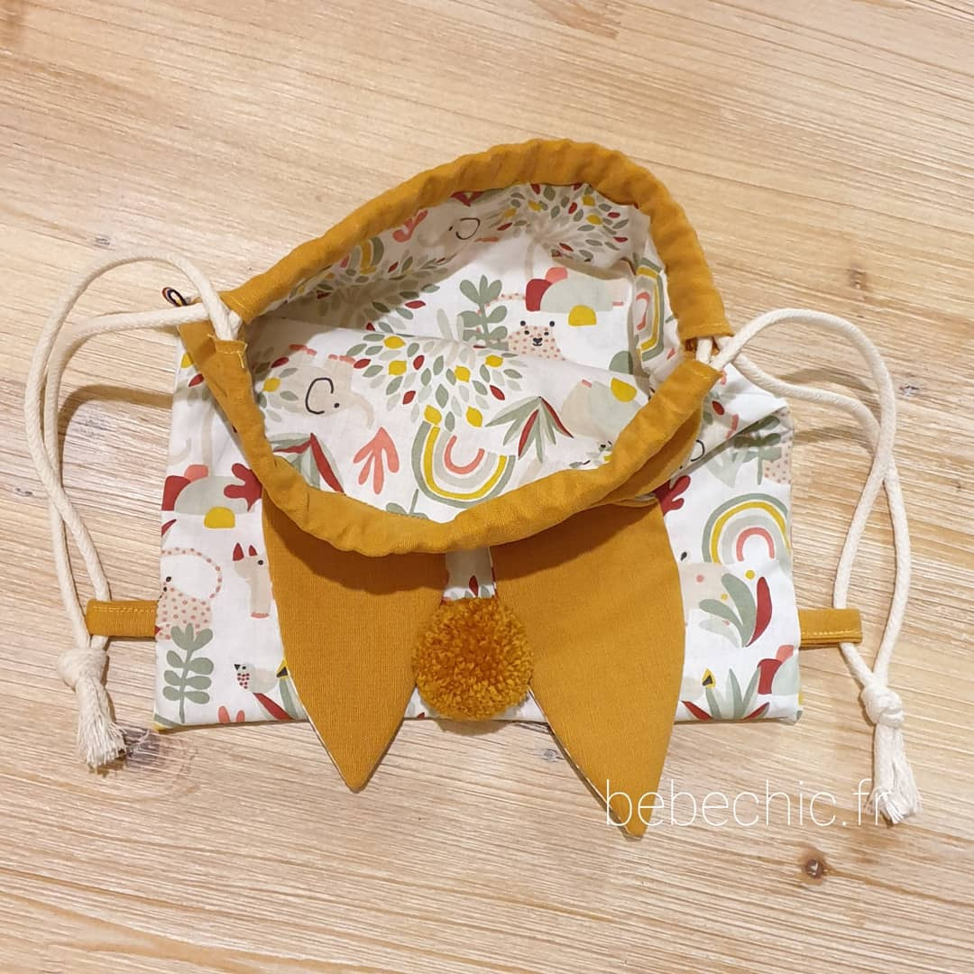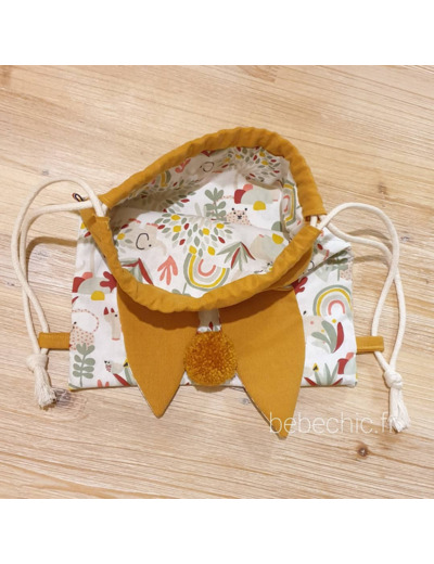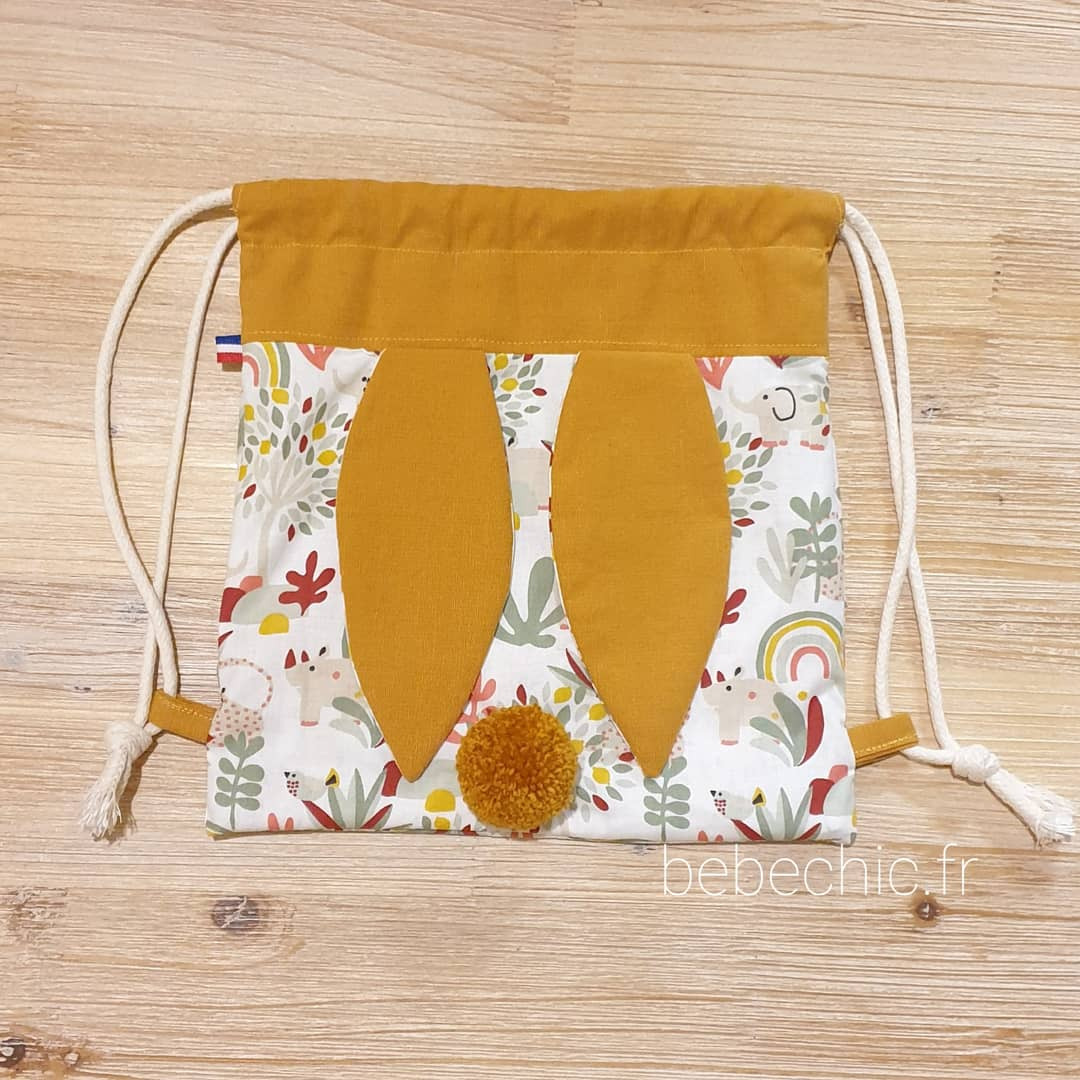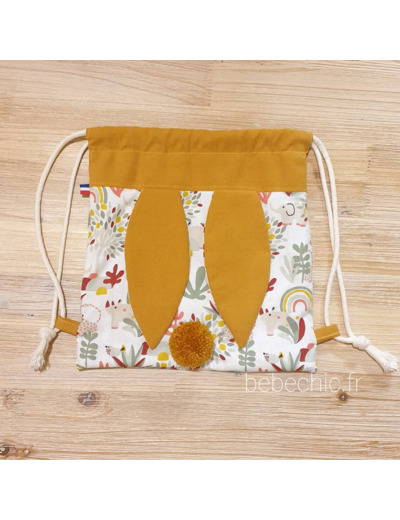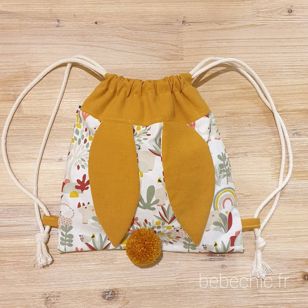 Voila un sac à dos tout mimi avec ses oreilles de lapin bi matière et son petit pompon assorti, il est idéal pour la créche, l'école, la nounou et même pour aller chez papi mamie . Ce petit sac lapinou sera le gardien idéal de doudou et tout plein de secrets ;)