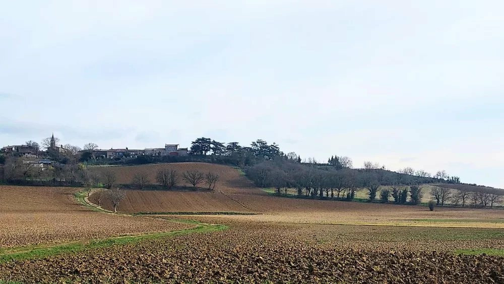Sur une parcelle calme, la vue dégagée sur les champs de tournesol et de pastel crée une atmosphère bucolique unique.