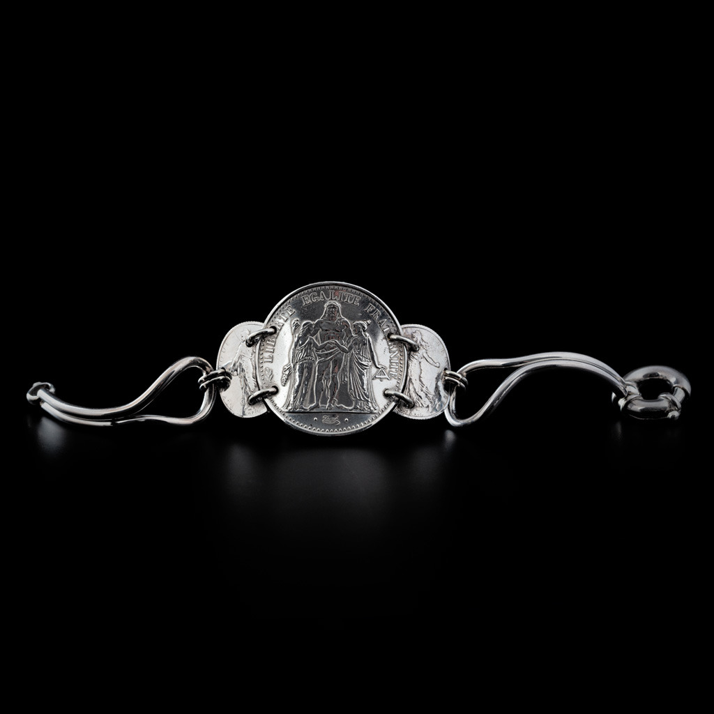 Argent massif 925/1000ème. Fil 3 mm. Pièce 10 Francs et 2 ½ pièces 1 Franc.