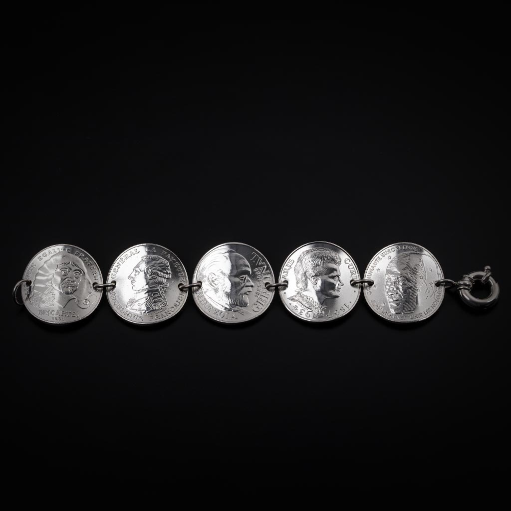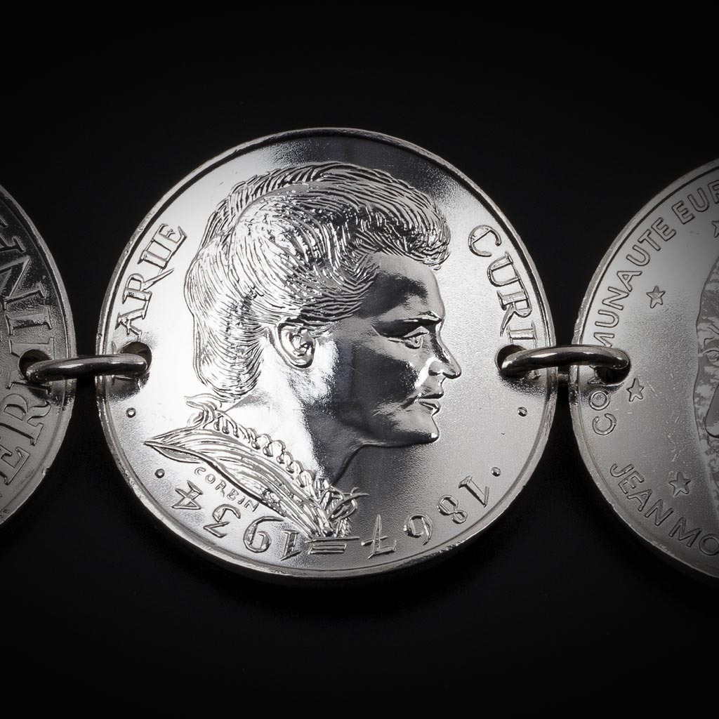 Argent massif 925/1000ème. 5 pièces de 100 francs cintrées.