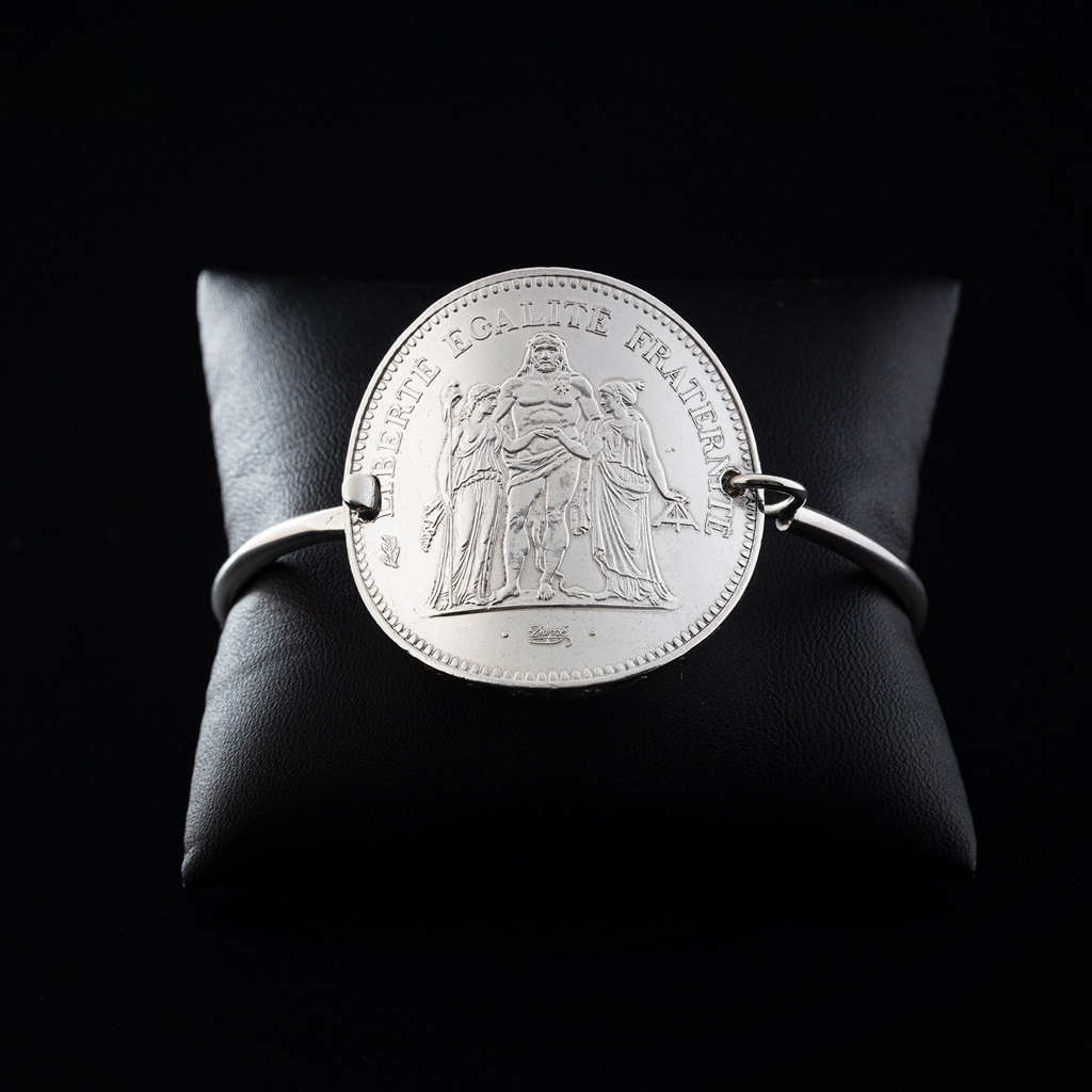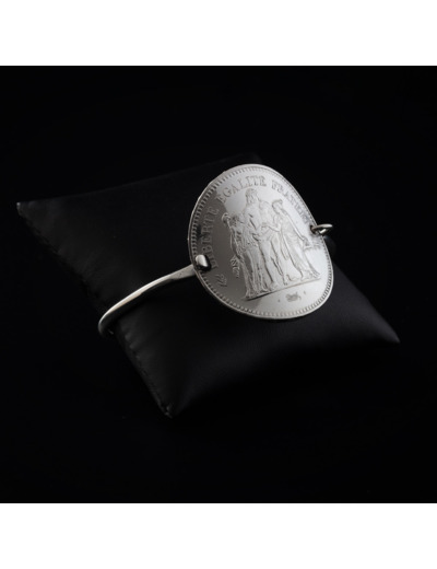 Argent massif 925/1000ème. Jonc fil 3 mm. Pièce 50 Francs cintrée.