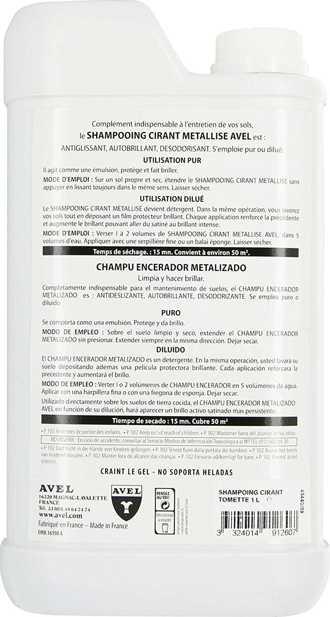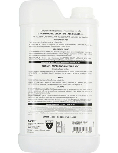 Sa formule à base d'émulsion vitrifiante est anti-tâche, anti-glissant, désodorisante.