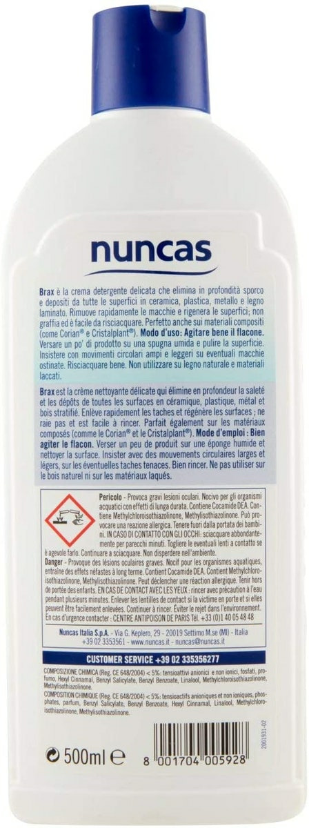 Nuncas Italia S.p.a. Brax Crème Nettoyante Désinfectante Pour Salle De Bains Flacon De 500 Ml