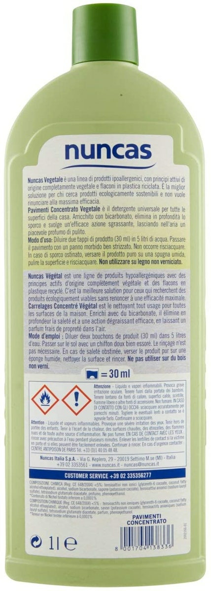 Nuncas Italia S.p.a. Nettoyant Concentré Pour Sols Ligne Végétale Flacon 1 L