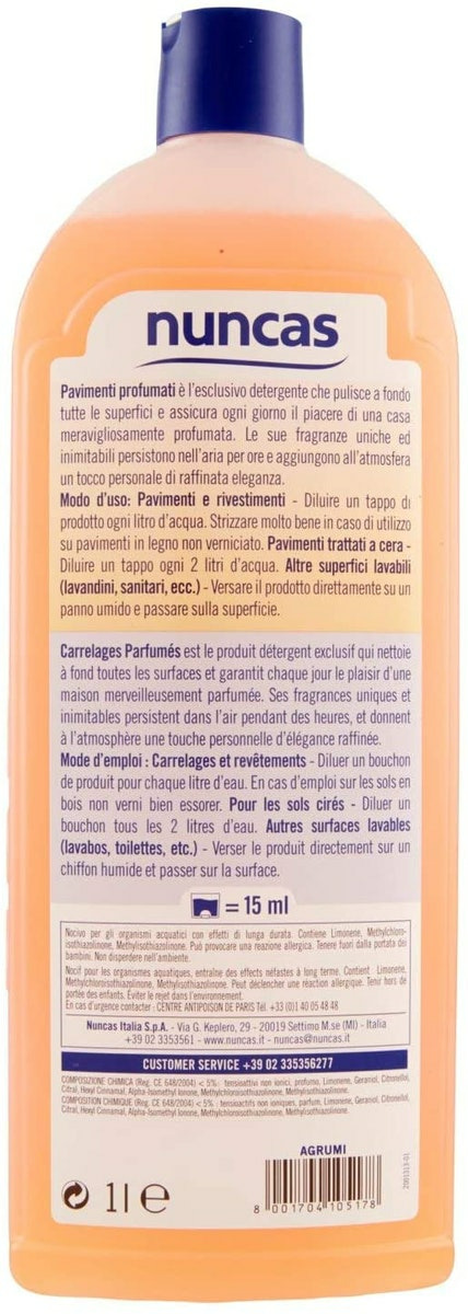 Nuncas Italia S.p.a. Nettoyant Désinfectant Universel Pour Sols Profumo Di Agrumi Flacon 1 L