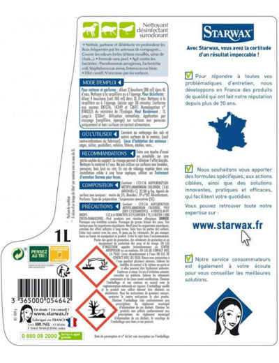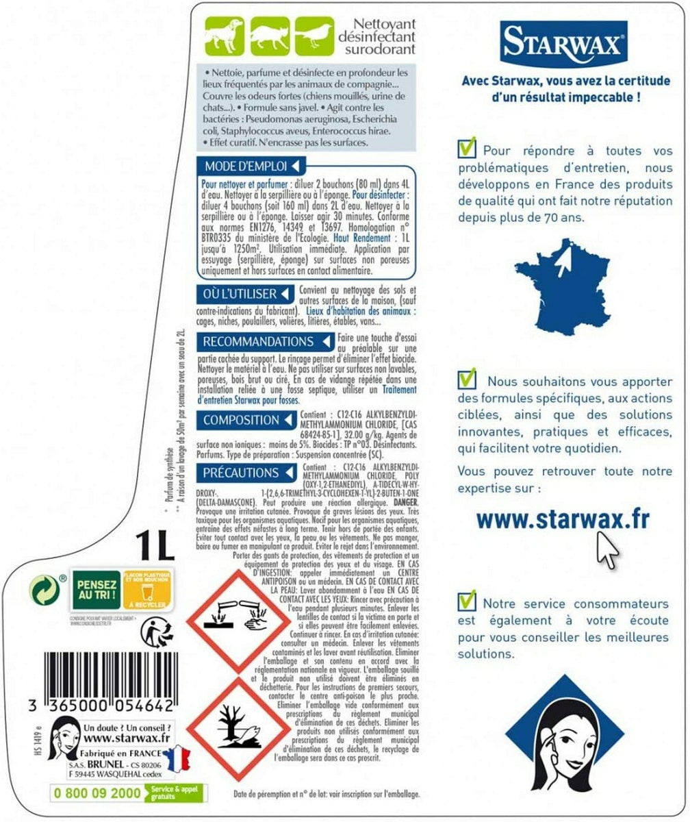 Starwax - Nettoyant Désinfectant Surodorant Animal 1L
