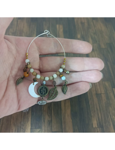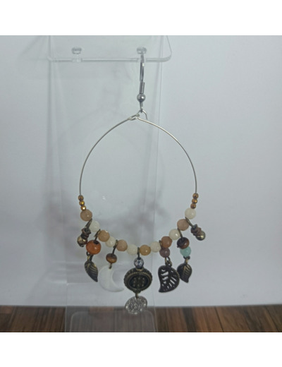 B.O. créoles jade marron/blanc et pampilles