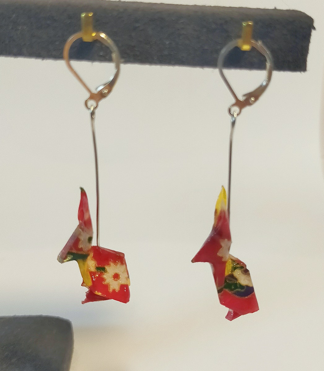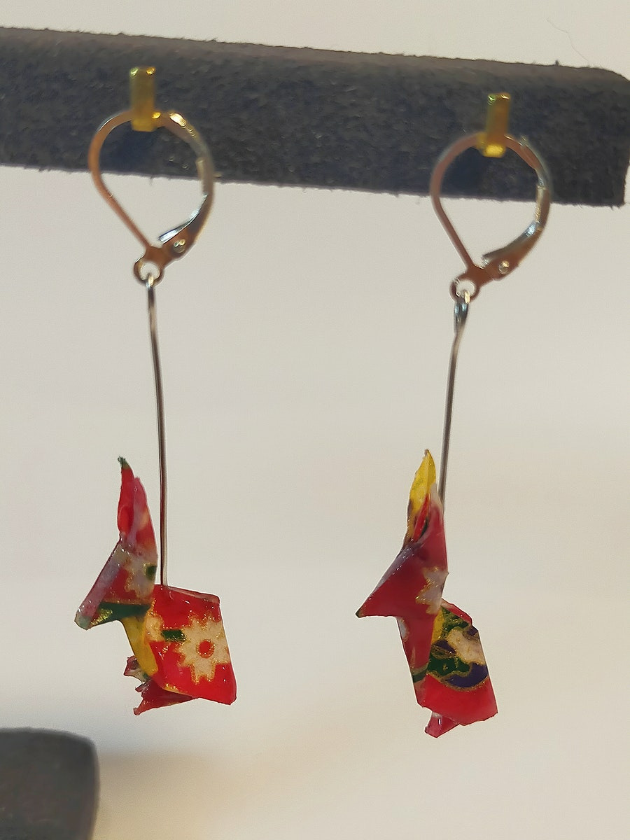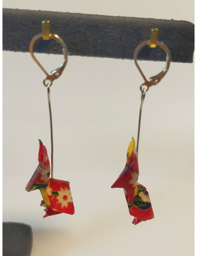 Boucles d'oreilles réalisées en origami, uniques, pliée avec amour! + résine. Très joli papier chiyogami dans des tons estampé de motifs traditionnels japonais.