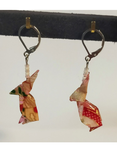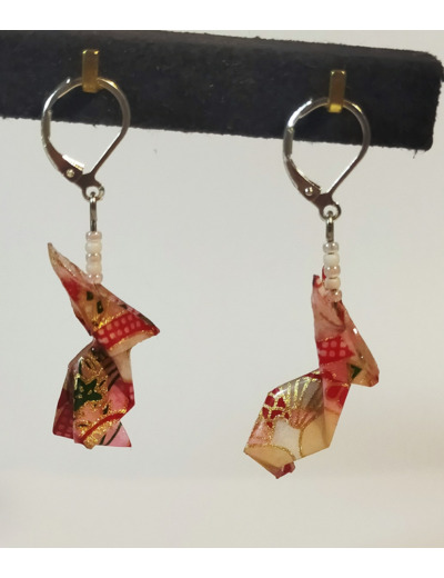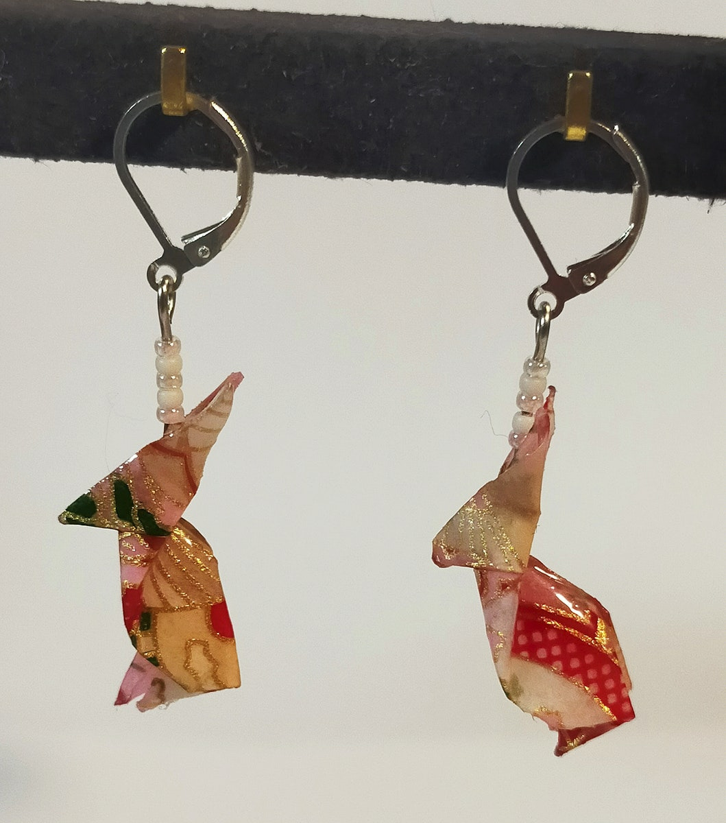 Boucles d'oreilles réalisées en origami, uniques, pliée avec amour! + résine. Très joli papier chiyogami dans des tons estampé de motifs traditionnels japonais.