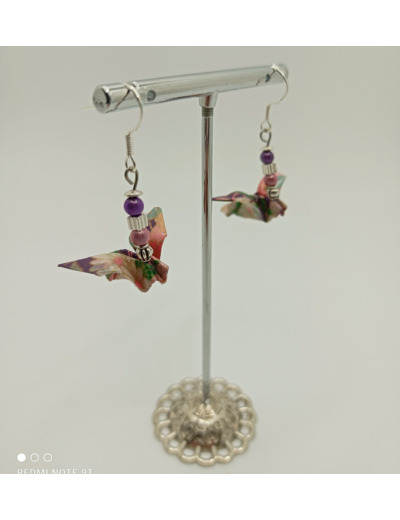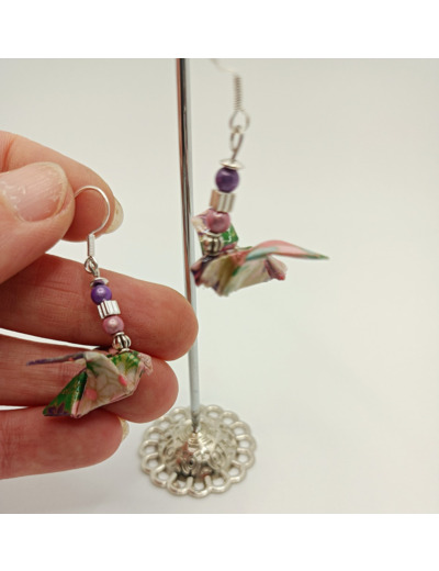 Boucles d'oreilles réalisées en origami, uniques, plié avec amour! + résine pour durcir le papier.