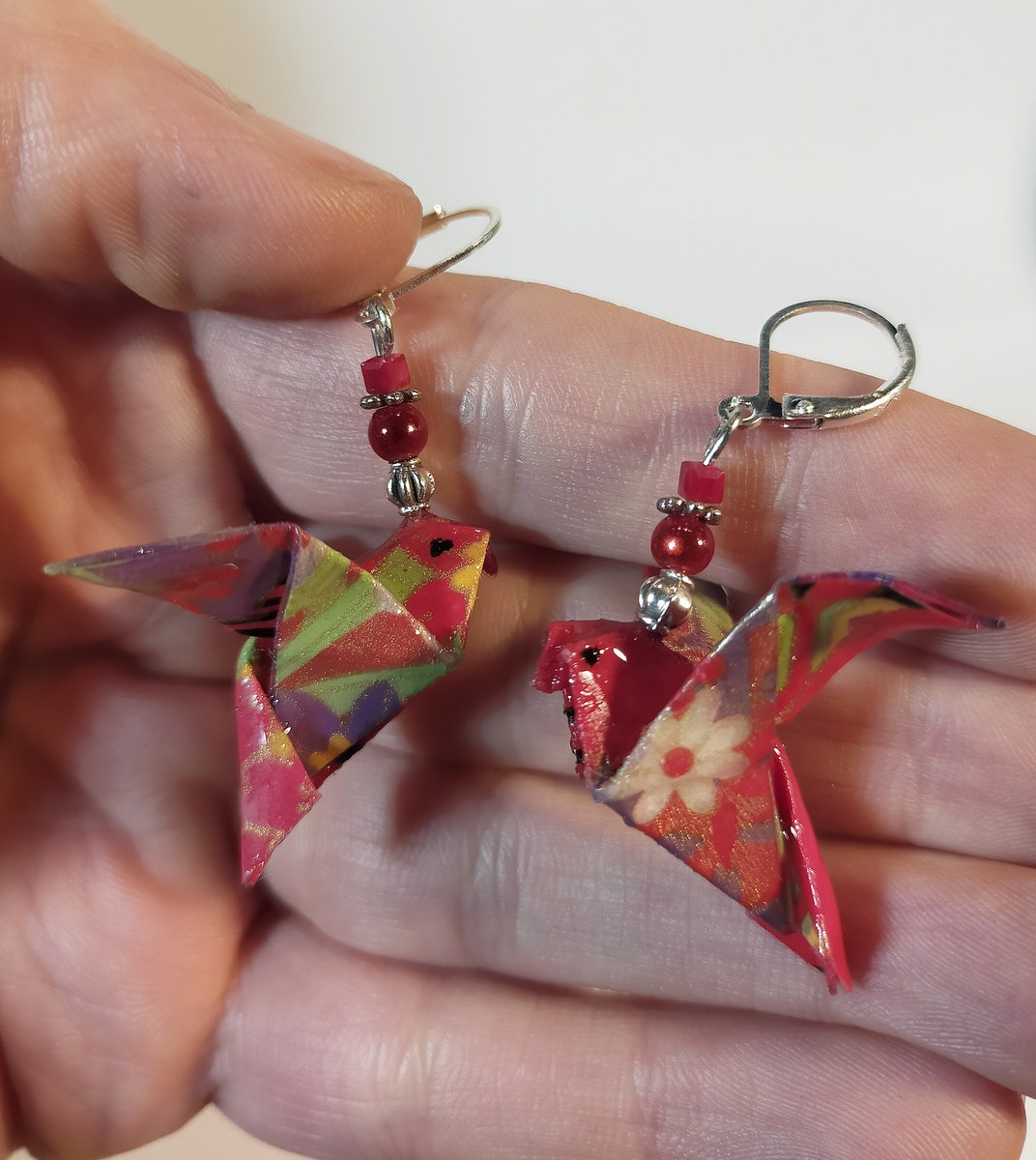 Boucles d'oreilles réalisées en origami, uniques, pliée avec amour! + résine. Très joli papier chiyogami dans des tons estampé de motifs traditionnels japonais.