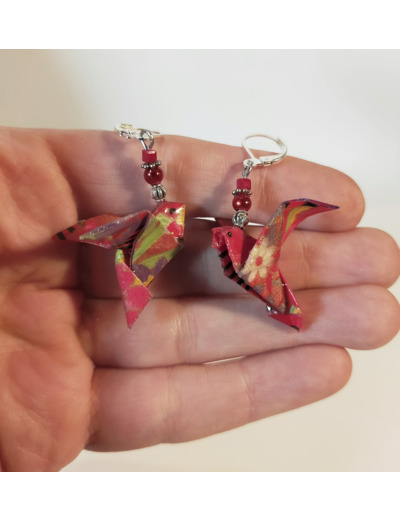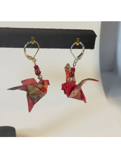Boucles d'oreilles réalisées en origami, uniques, pliée avec amour! + résine. Très joli papier chiyogami dans des tons estampé de motifs traditionnels japonais.