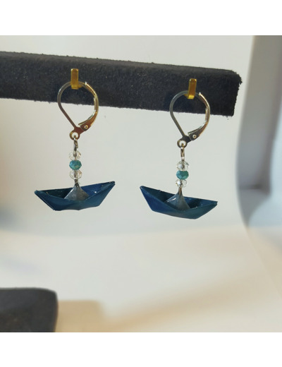 Boucles d'oreilles réalisées en origami, uniques, pliée avec amour! + résine. Très joli papier chiyogami dans des tons estampé de motifs traditionnels japonais.
