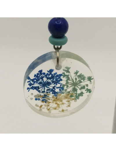 B.O. résine fleurs turquoise/bleu/blanc, rondes #6