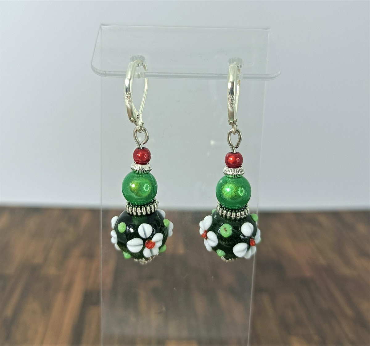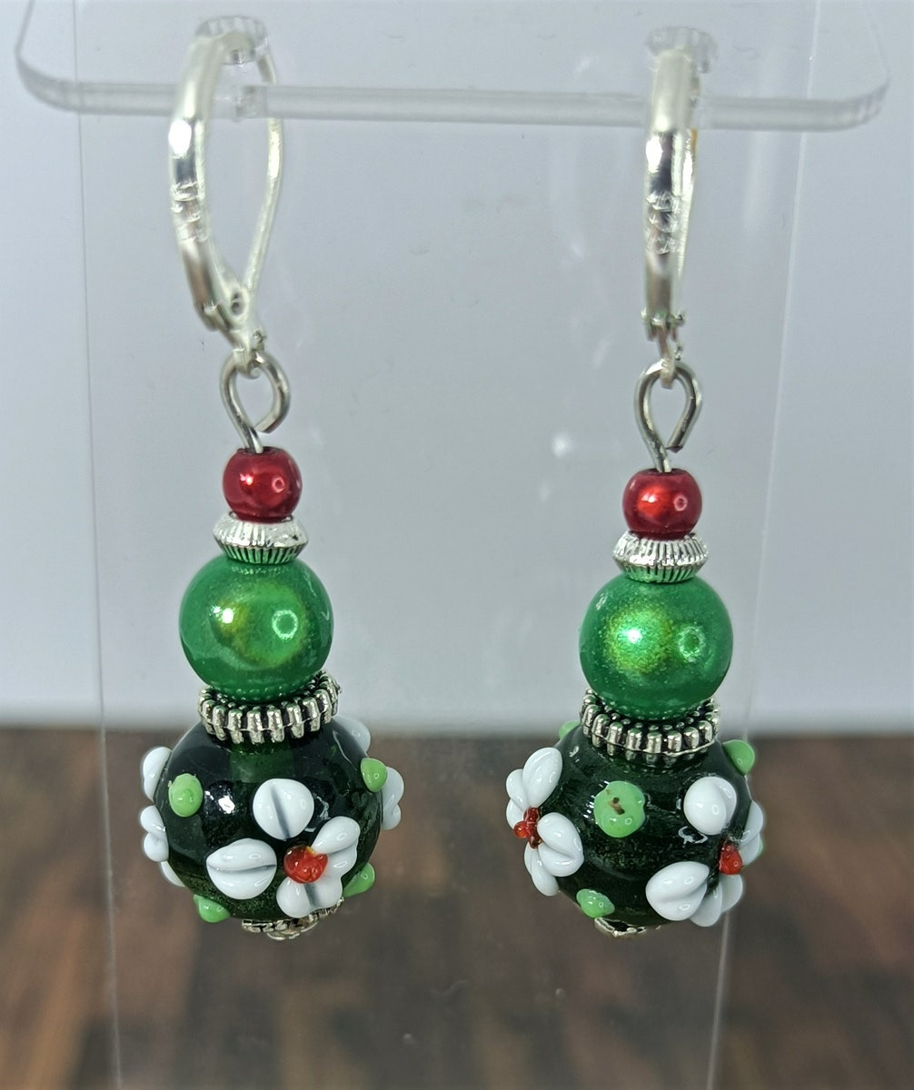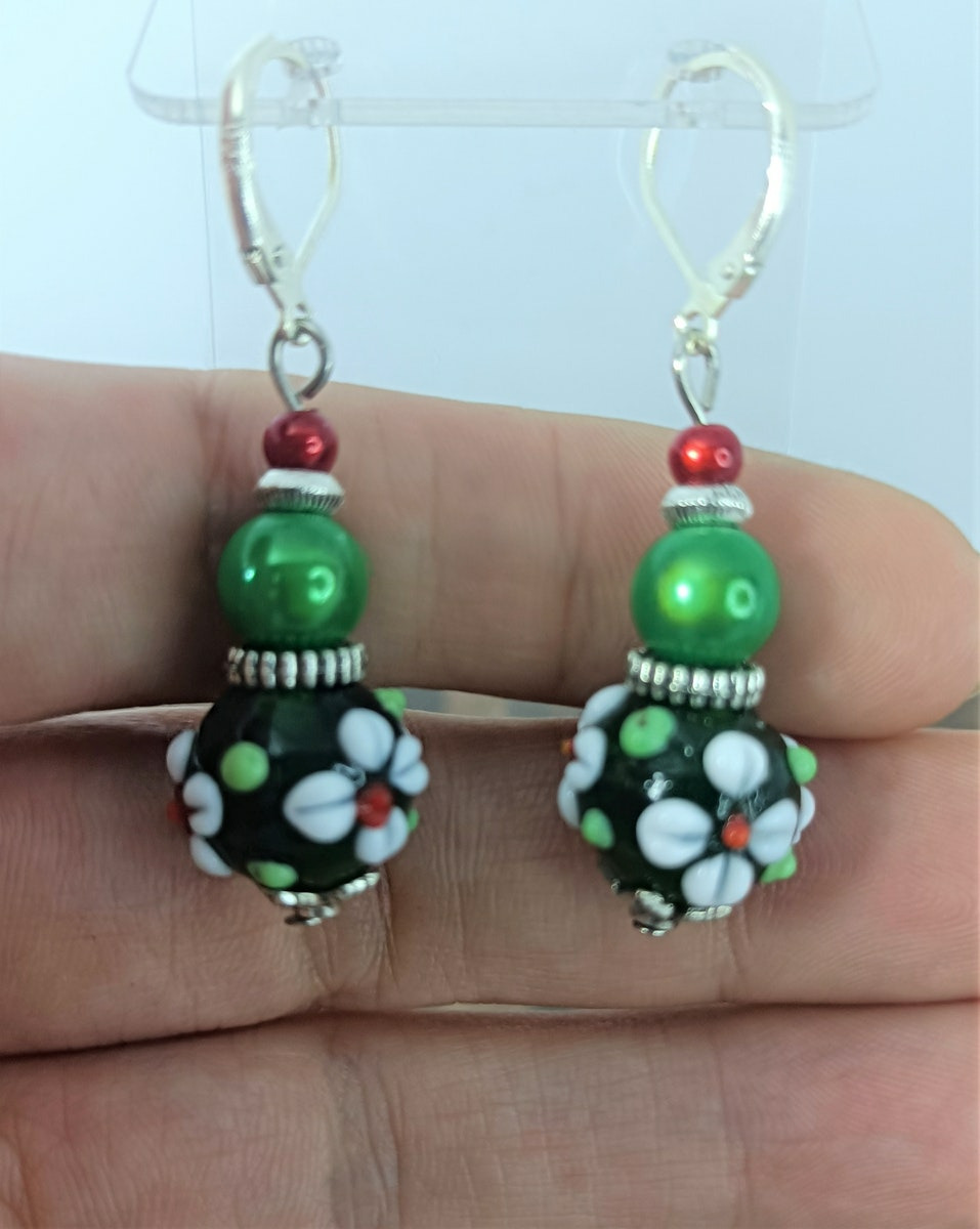 Grosse perle en verre et perles vertes et rouges 3D.