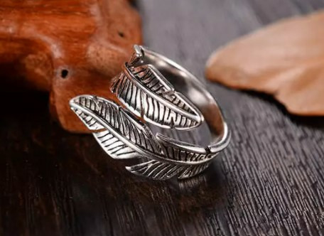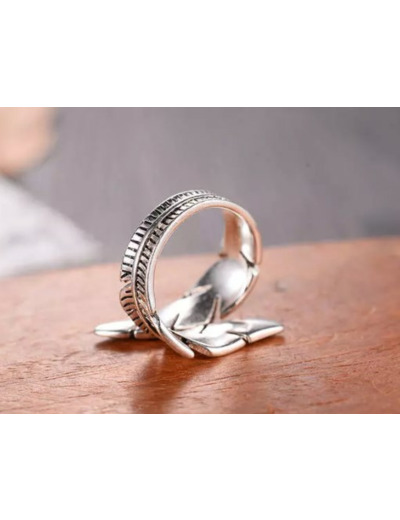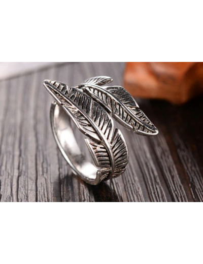 Bague 2 plumes ajustable en argent