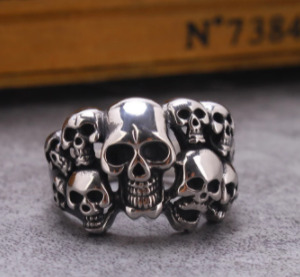 Bague en acier inoxydable pour hommes têtes de mort +++