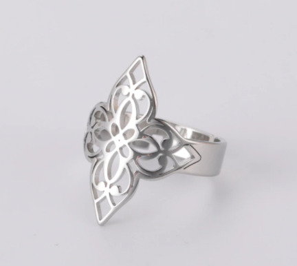 Bague filigrane longue en acier inoxydable