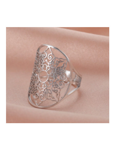Bague géométrique en filigrane en acier inoxydable