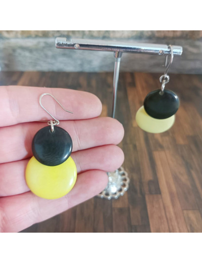 Boucles d'oreilles Alexia noir-anis en ivoire végétal