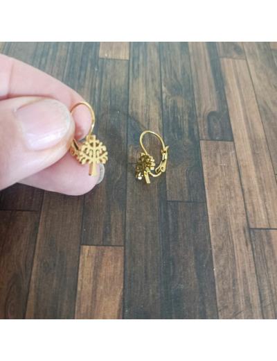 Boucles d'oreilles arbre de vie en acier inoxydable doré ou argenté