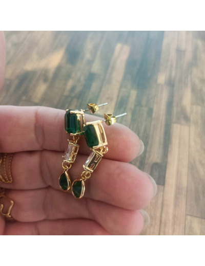 Boucles d’oreilles en verre Crystal Glass émeraude-blanc-doré