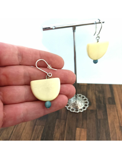 Boucles d'oreilles Lina blanches et bleu en ivoire végétal