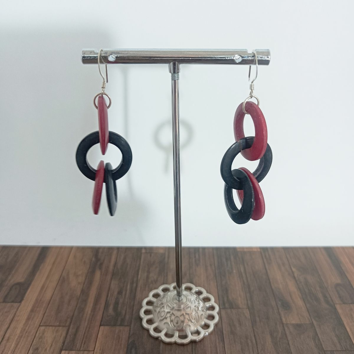 Boucles d'oreilles Mina rouge-noir en ivoire végétal
