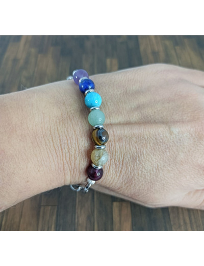 Perles en pierres naturelles 8mm au couleurs des des 7 chakras.