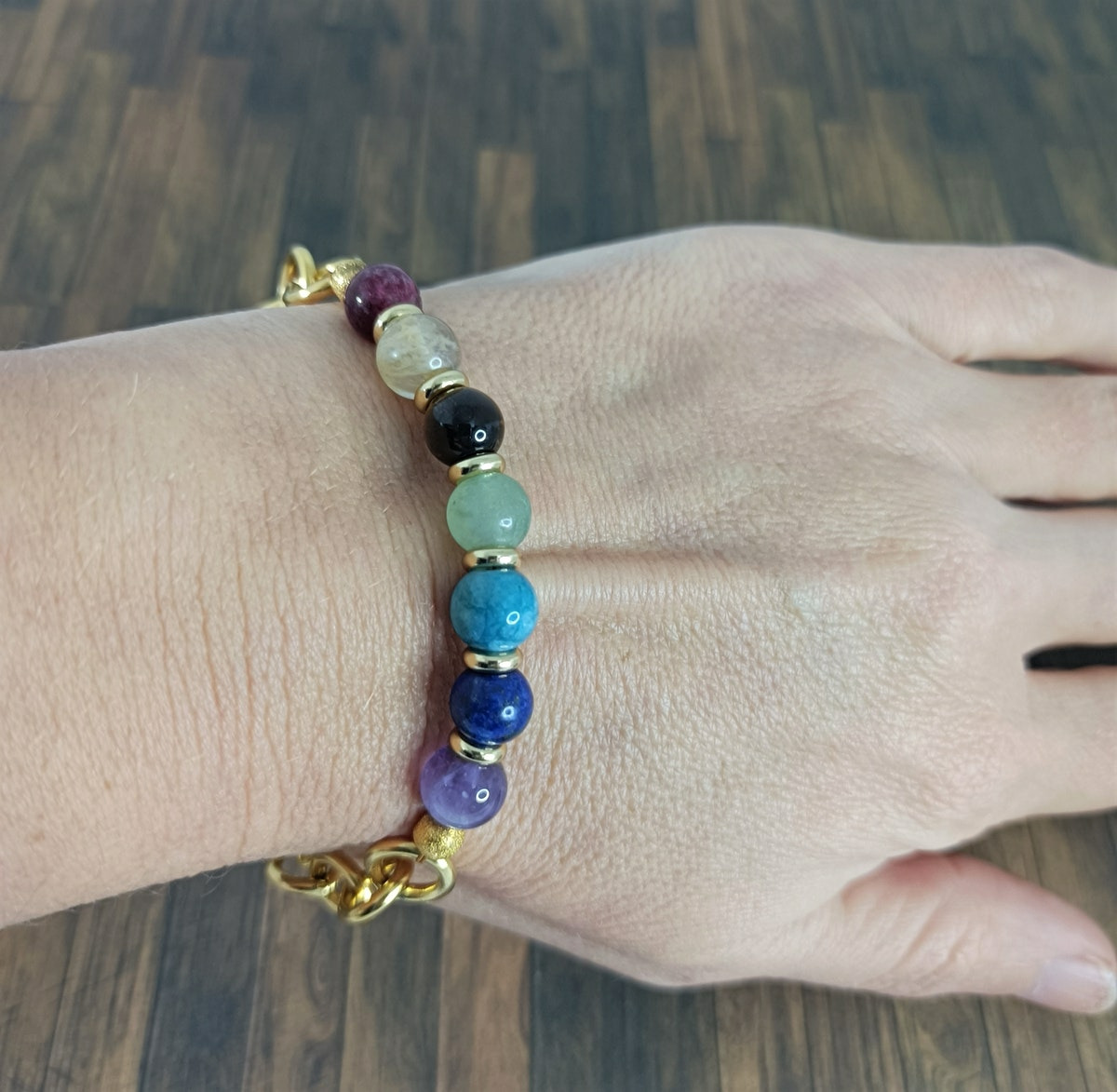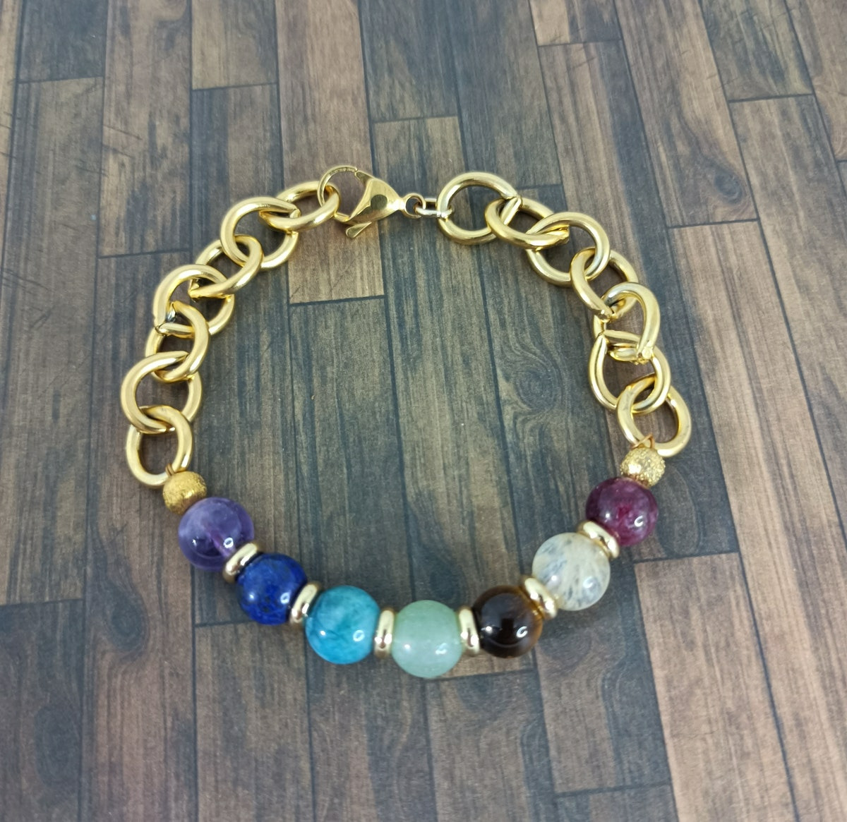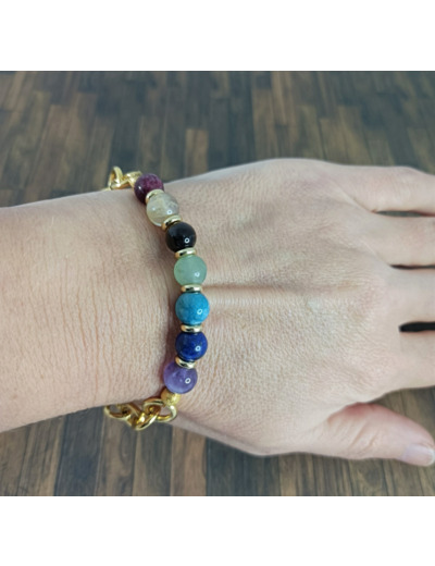 Perles en pierres naturelles 8mm au couleurs des des 7 chakras.