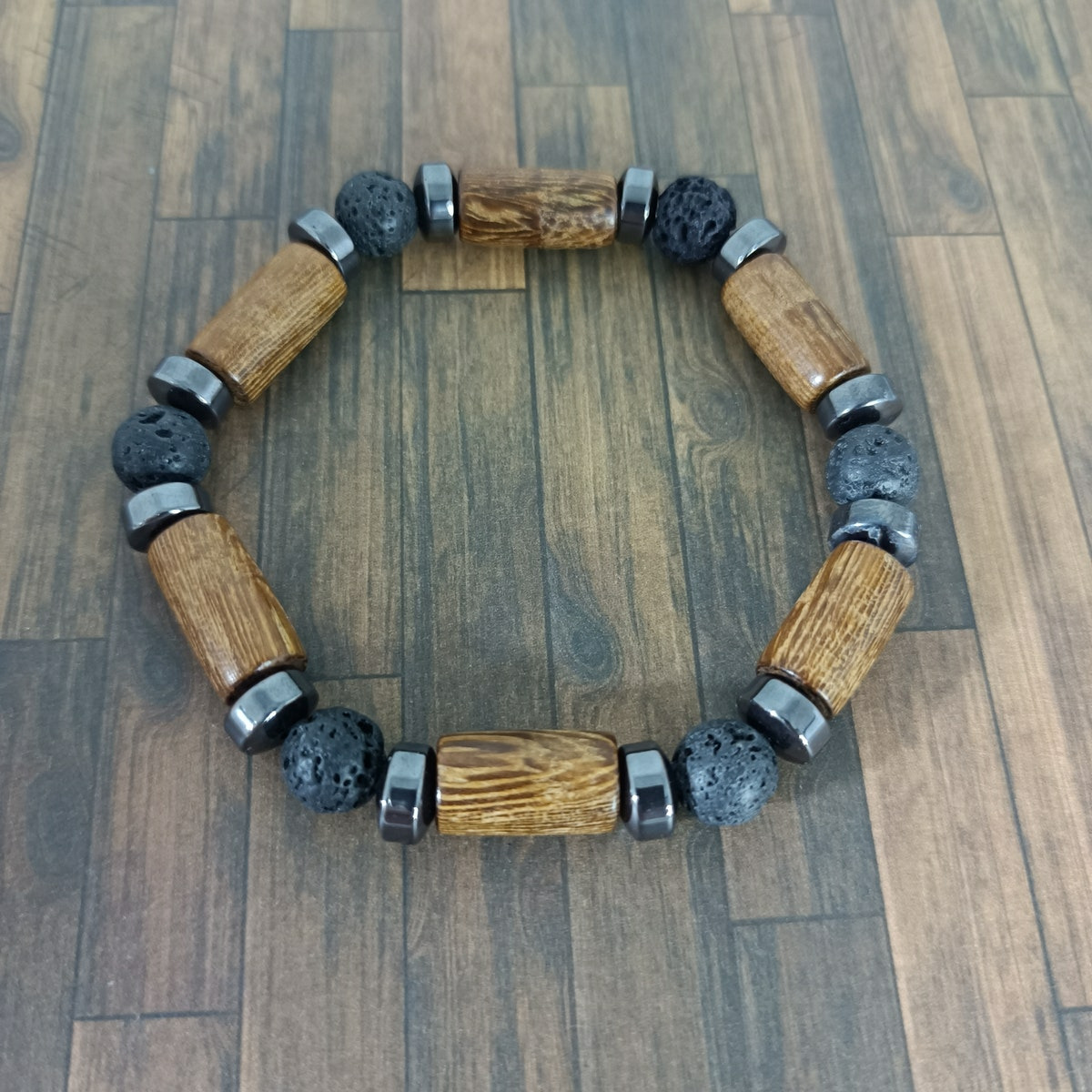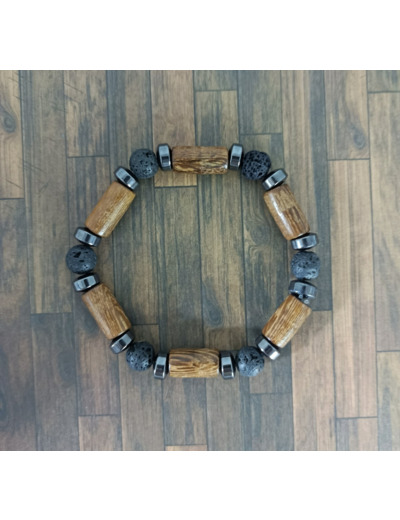 Bracelet bois/pierre de lave/hématite 8mm